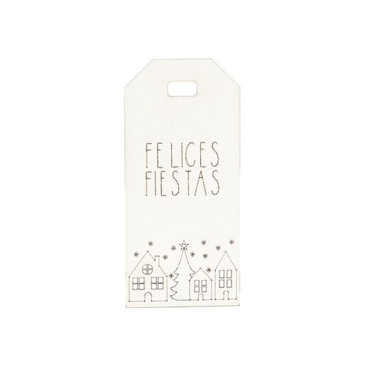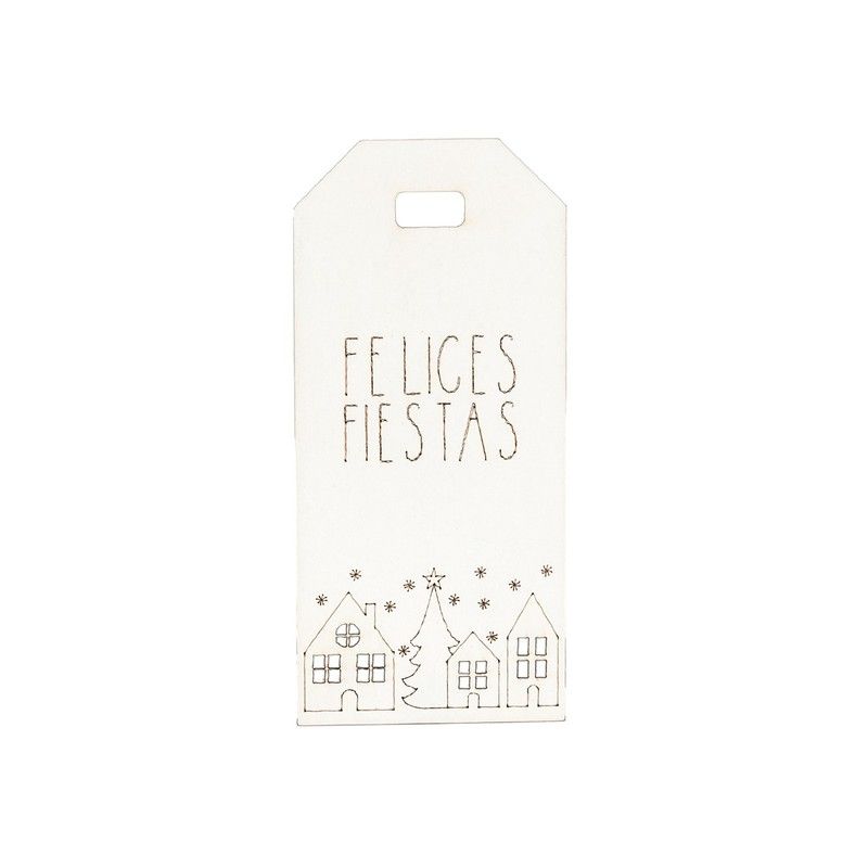 Tarjeta ventanas perforadas blanca Felices Fiestas 3,2x7cm. min 24.